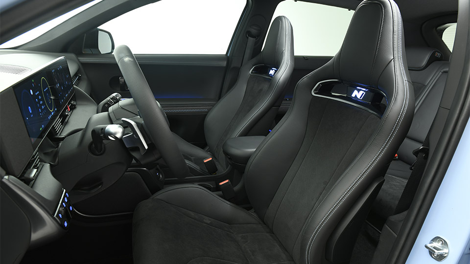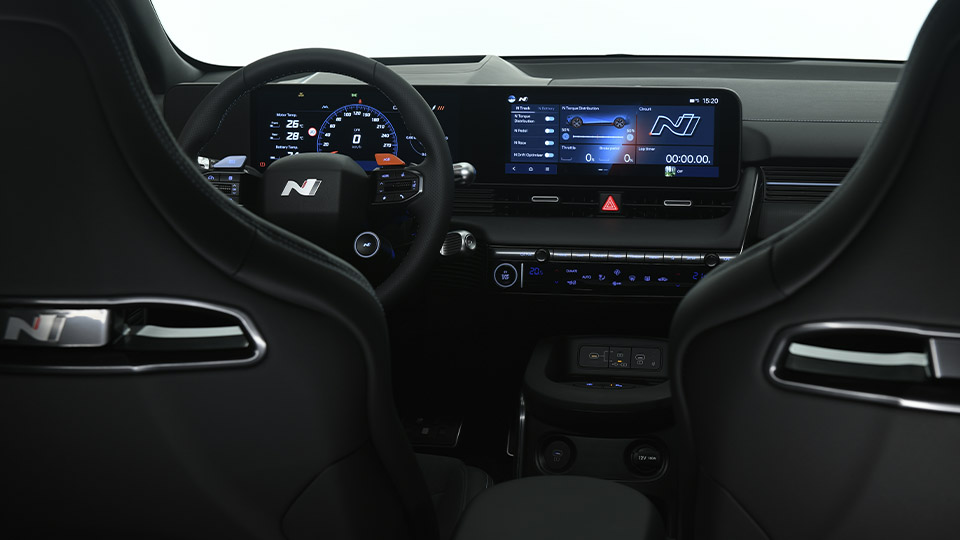 Le mode N Drift Optimizer permet même de régler la répartition du couple pour faciliter les dérapages contrôlés, tandis que le système N Brake Regen permet de gérer le freinage régénératif comme un véritable frein moteur. Les sièges sport N avec des renforts latéraux prononcés et le volant gainé d’Alcantara complètent l’expérience de conduite sportive.